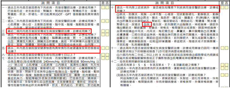 (條款: 最近2年內是否健康檢查有異常而接受其他檢查)
