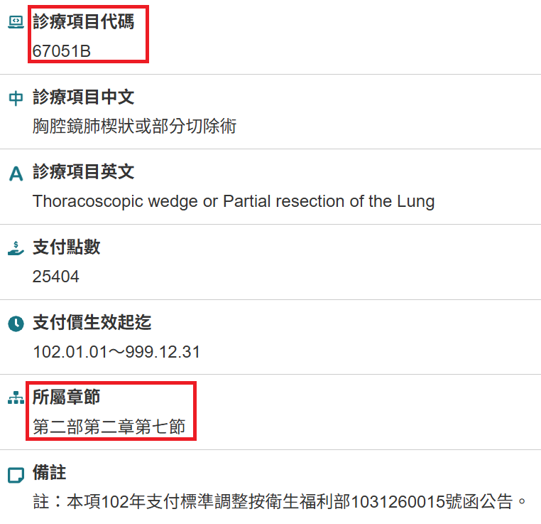 ✔️雖然在227表裡可能查不到這個代碼,但實際上 肺部楔型切除屬於胸腔外科開胸手術,在227表內會以「對應項目」來判斷,而不是單純看健保代碼一模一樣。