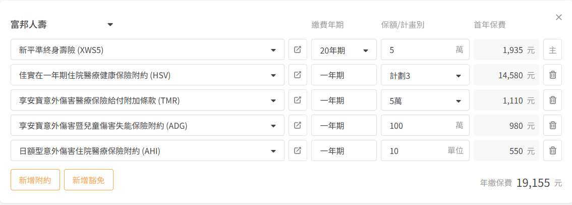 建議可以優先參考富邦+全球的搭配方案 用兩家優勢商品搭配就好哦