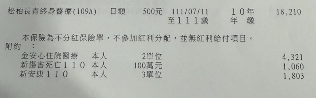 1️⃣松柏長青終身醫療 受健保227限制,所以不賠