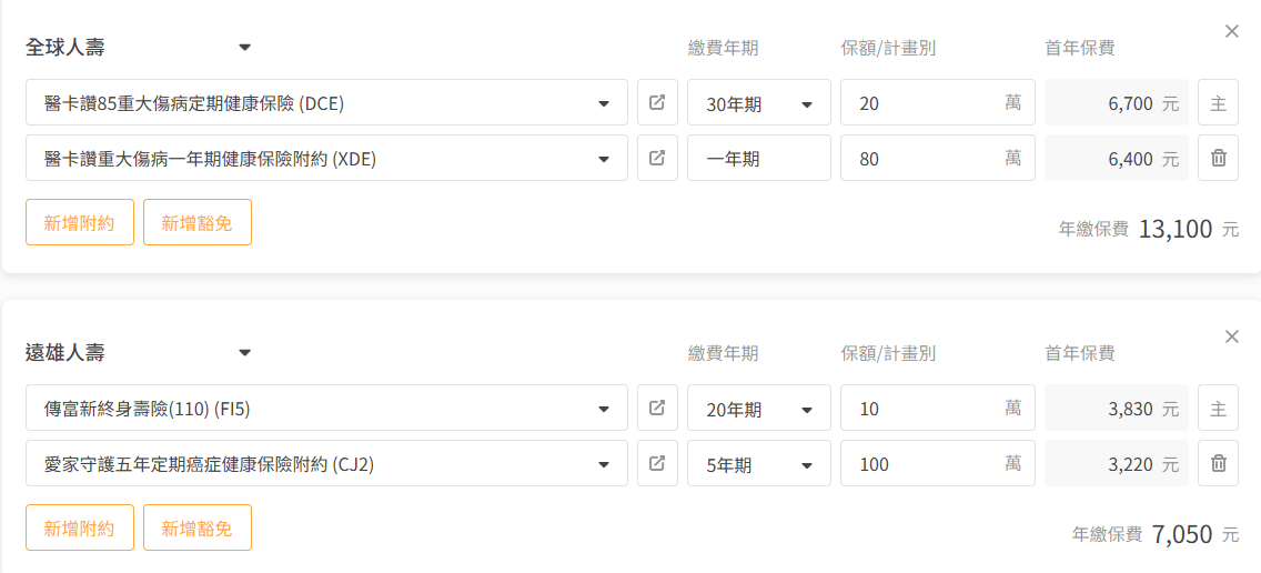 因目前仍有保單在繳費,新增預算約1-2萬/年