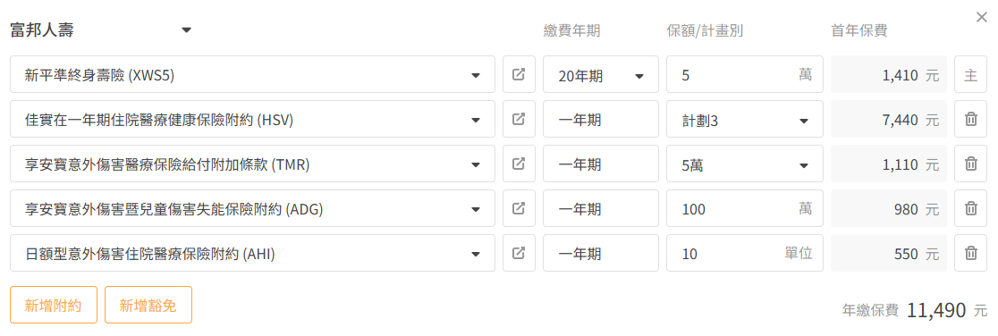 如果要增加其他保障,建議要再提高預算制2萬多喔!!