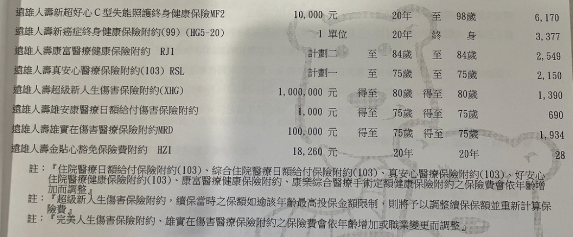 2.第二張有蠻多屬於「保障型」的附約,建議可以留著