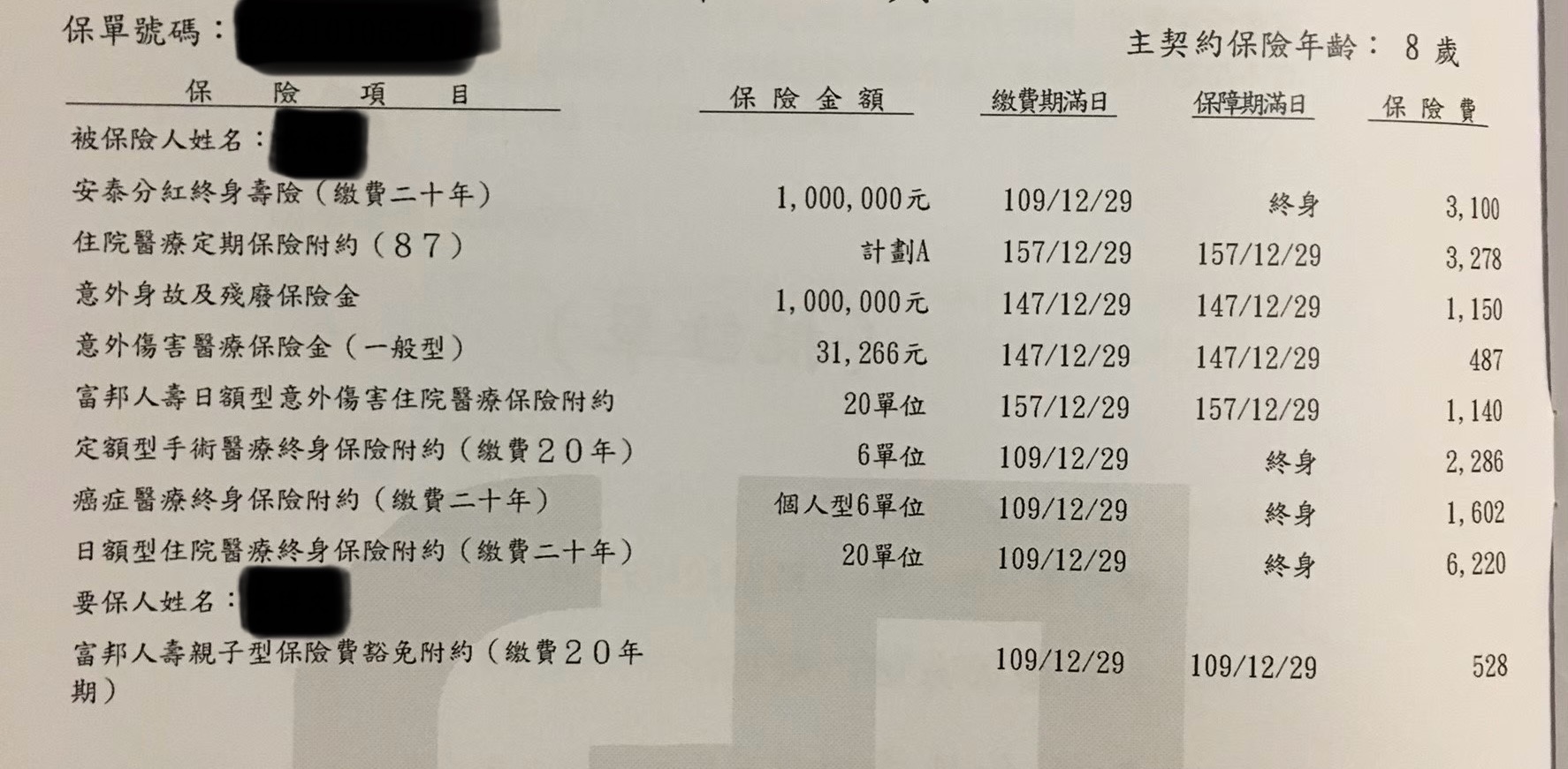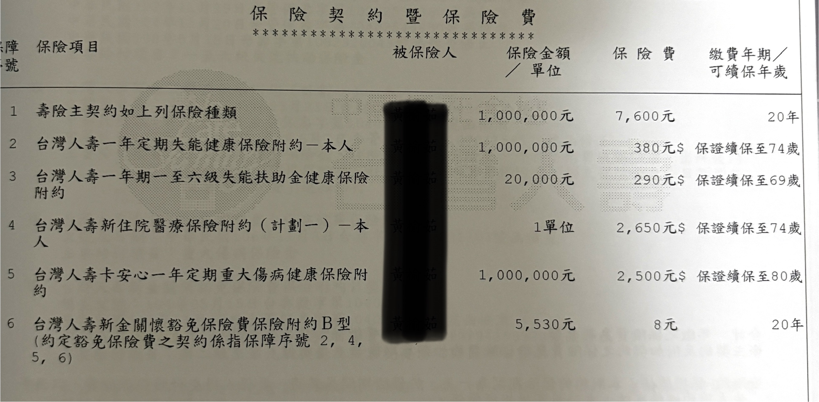 先恭喜您終身險繳費期滿且有規劃到失能險及2張醫療實支,請務必好好繳費保留,擁有基本的保障囉