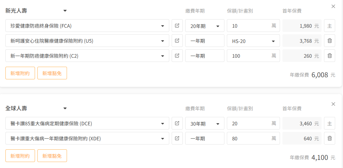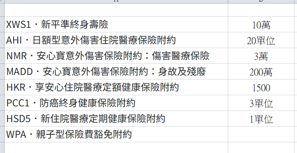 🔺舊保單有:終身壽險、醫療實支實付、癌症險(療程型)、住院日額、意外險(含醫療)