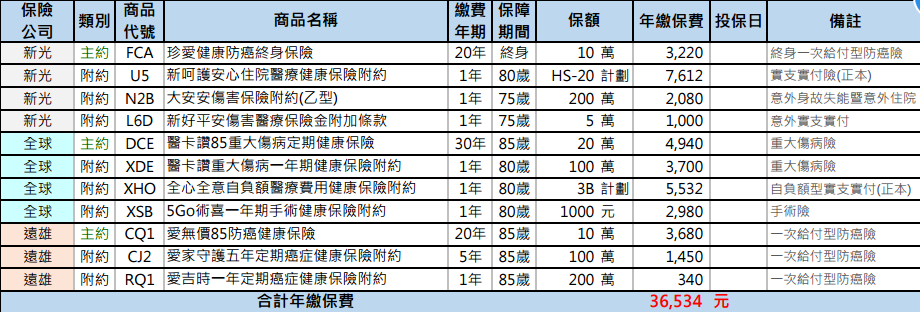 目前整體規劃方向沒太大的問題,保費也在正常範圍