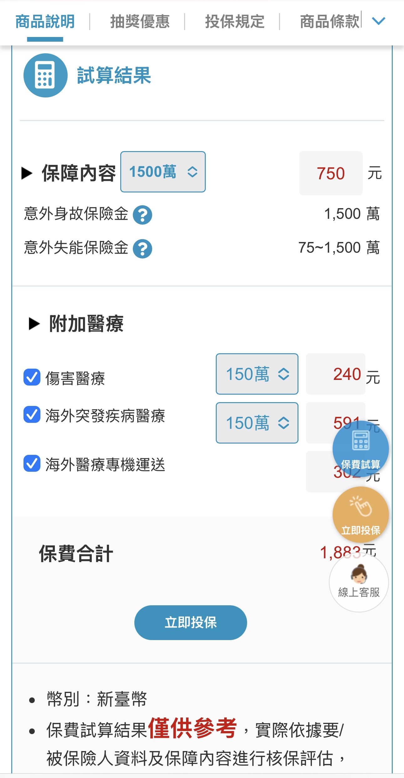 大部分的產險好像國外額度都很少五萬 除非突發疾病