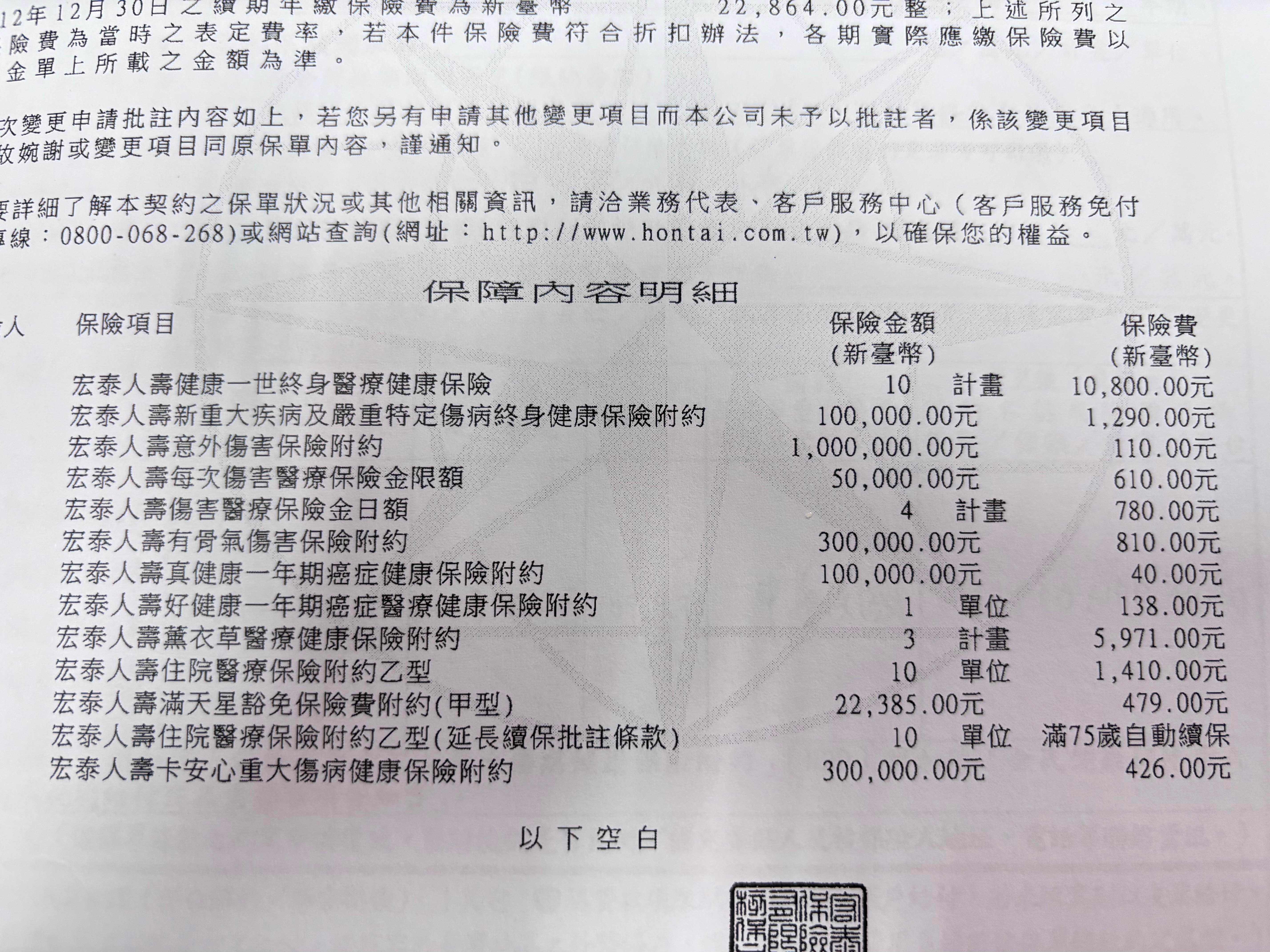 🅰️以投保的醫療實支實付+定額給付的終身醫療&住院日額的額度來看,目前花費基本上可以cover