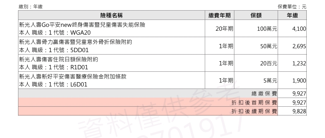 另外大多定期意外險都只有續保年期到75歲,如果預算充足的情況下規劃WGA20也不是壞事