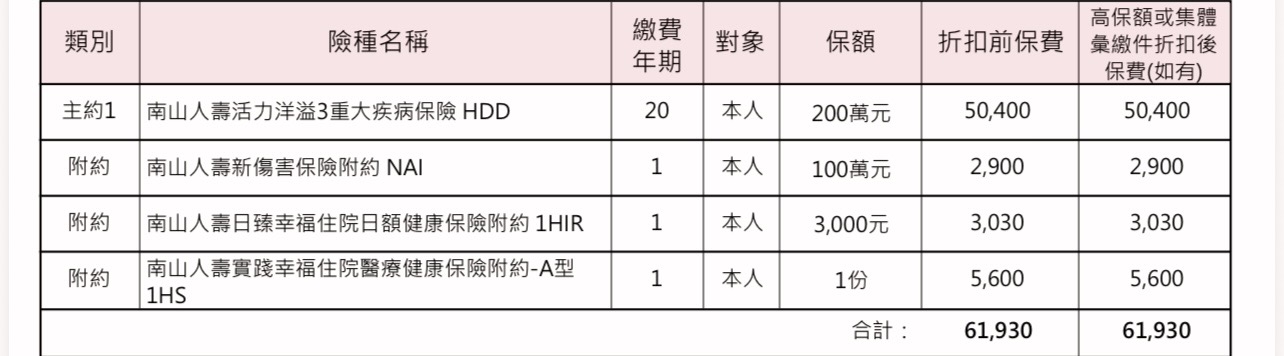 主約那個重大疾病就要吃掉5萬預算也是很敢