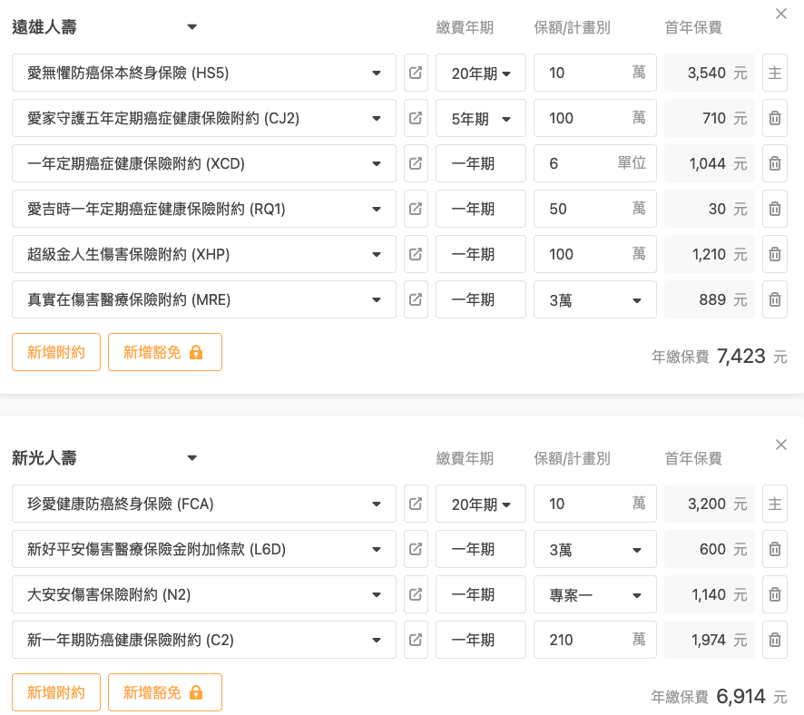 新光補強醫療實支+意外 然後再用遠雄補強癌症一次金即可