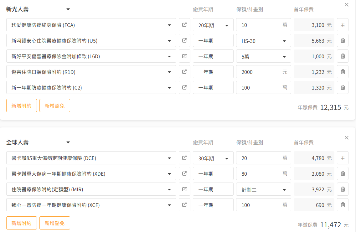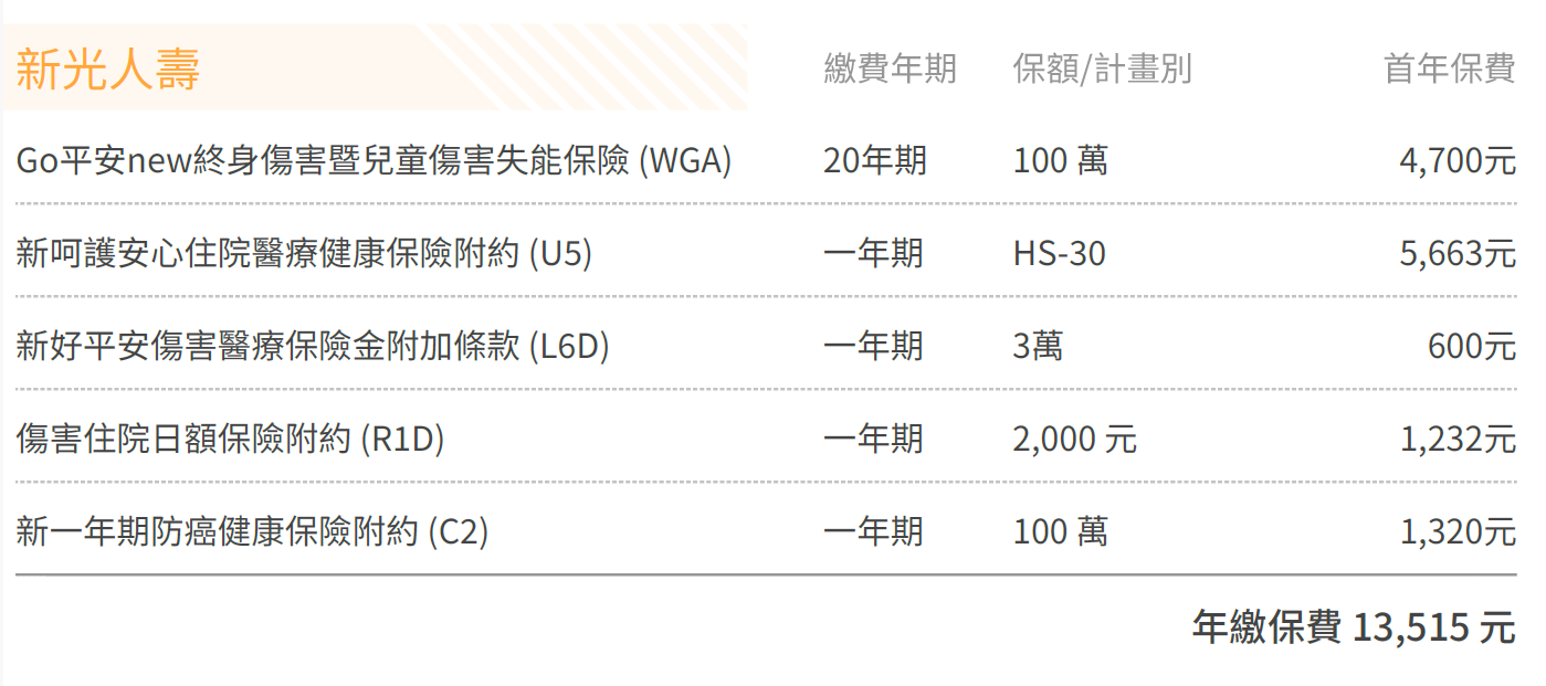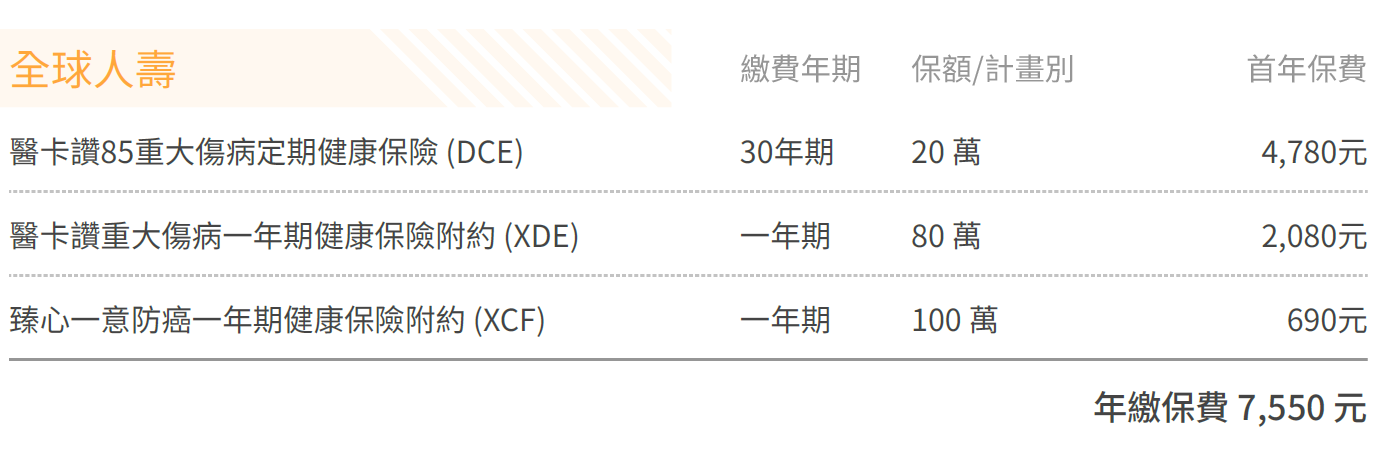 想重新規劃醫療意外實支保險,幫她做了新光和全球的保單