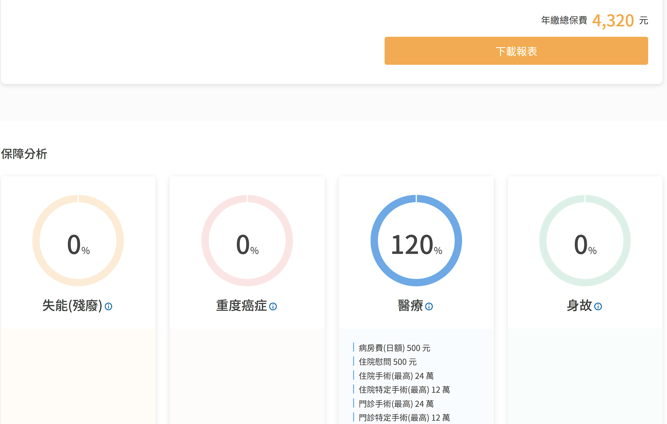 1. 醫療險:病房限額4000元/日、雜費40萬、門診實支8萬。