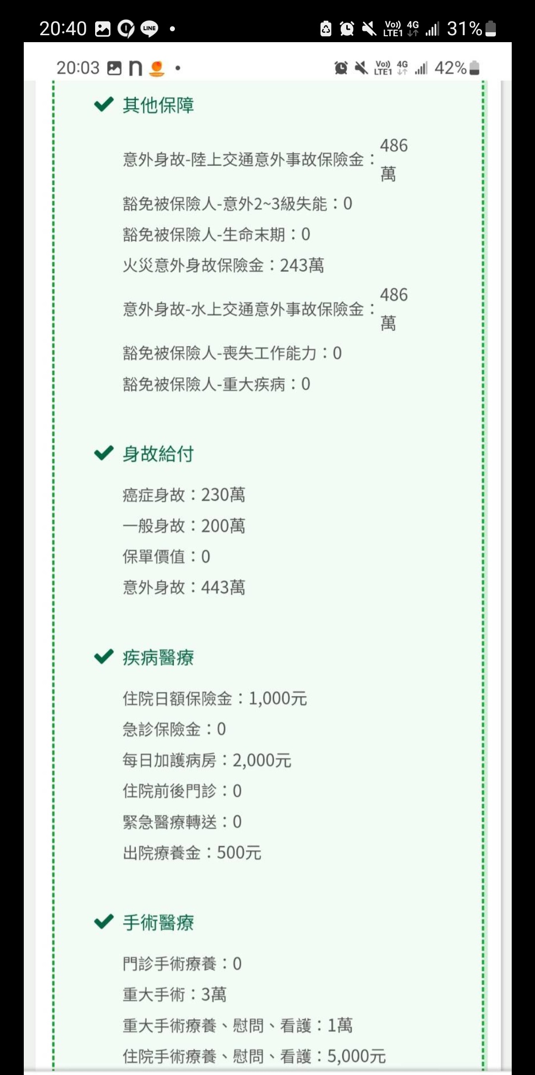 🔹有的話,舊保單建議可以把所有主+附約的所有保障內容(包含商品名稱、保額、保費、投保年期跟投保時間)一併貼上來,健診分析後,針對條款及保障缺口給您更精準的建議唷