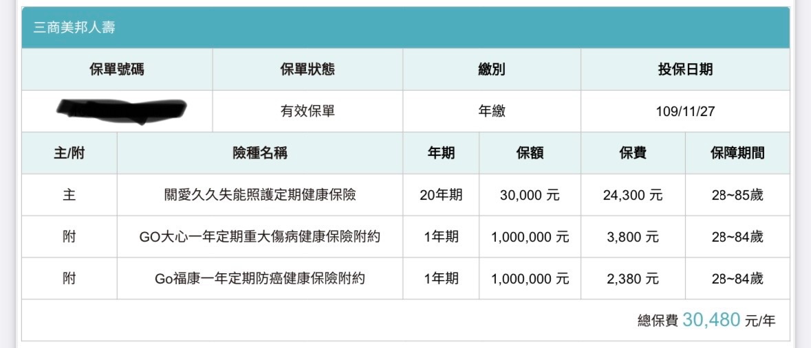 先恭喜您有規劃到失能險及終身險繳費期滿,請務必好好繳費保留,擁有基本的保障囉