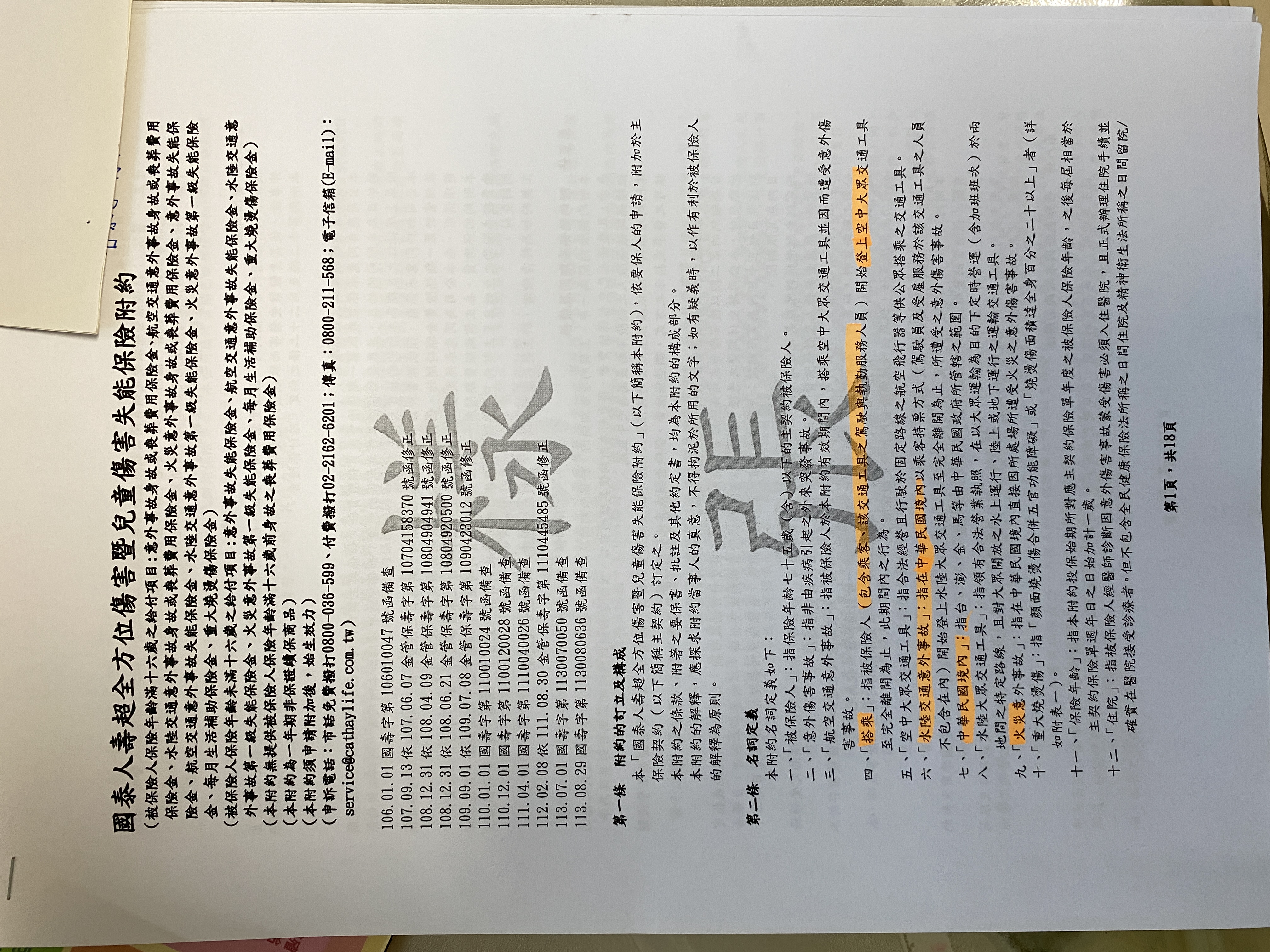 所以 國泰 - 不是在中華民國境內 以外的意外傷害 不理賠 ?!