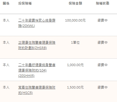 🔺舊保單有:終身壽險、終身醫療、終身重大疾病、終身特定傷病、住院日額、醫療實支實付、意外險(含醫療)、骨折險