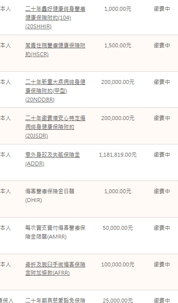 3、終身重大疾病NDDBR跟終身特定傷病JSDR的保障範圍僅7項及22項,條款較嚴苛,因保額僅20萬,若繳費年期未滿5年可以考慮調整