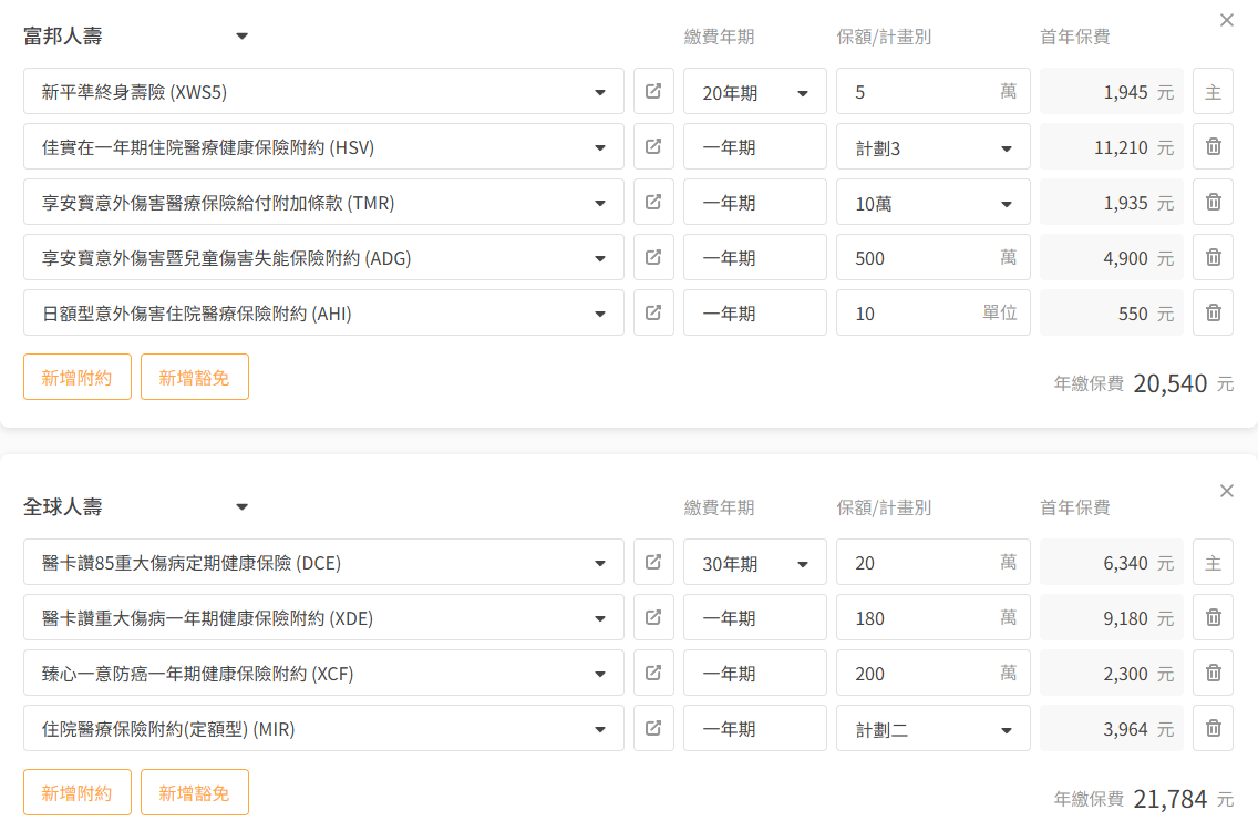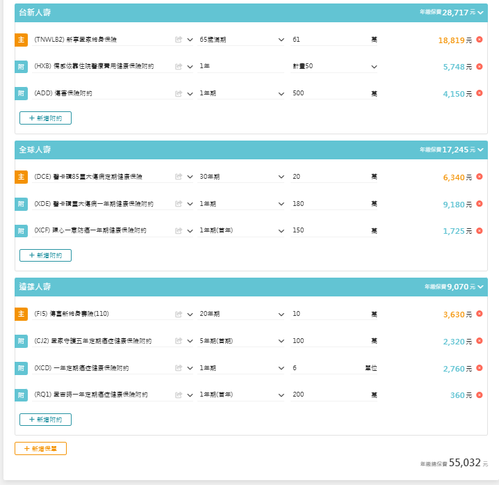 預算3~5萬/年,有打算搭配房貸壽險,因此保單壽險額度規劃較低。