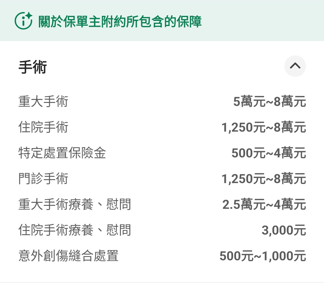 以下為保單內容: