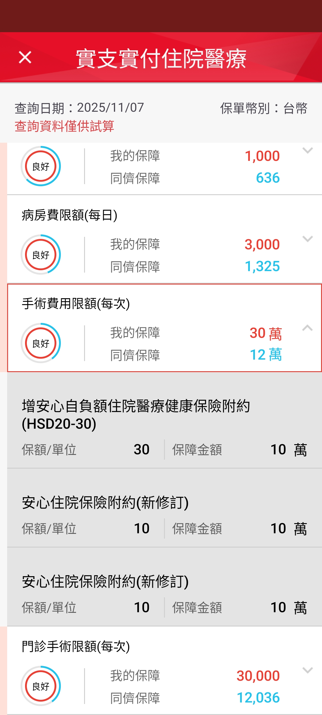 目前的自費(達文西手術、自費鋼板、特殊材料、微創手術、高端骨材)項目越來越高,實支實付規劃以高雜費且保證續保為主。