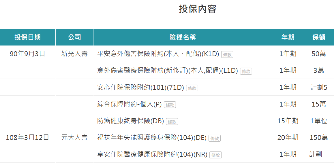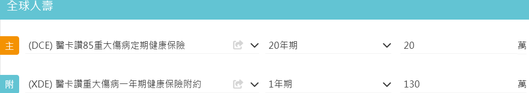起初她開了建議清單給我,似乎除了壽險以外(個人沒家庭,壽險額度我當成是附加的),幾乎都需要補強,但因為不少終身險覺得保費有點高,且自己是想排除終身險的,所以自己才開始稍稍研究配置,目前初步補強的規劃如下: