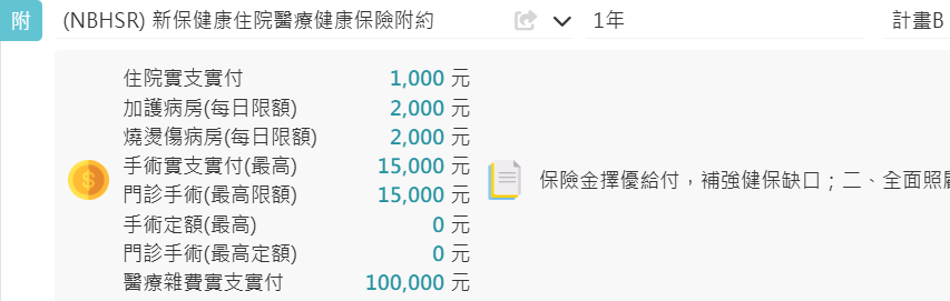 1.醫療部分還有需要增加自負額(DBHSR)?(建議清單中有)