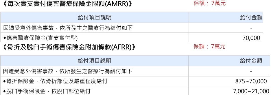 且如果有骨折狀況通常也會啟動意外+醫療實支。
