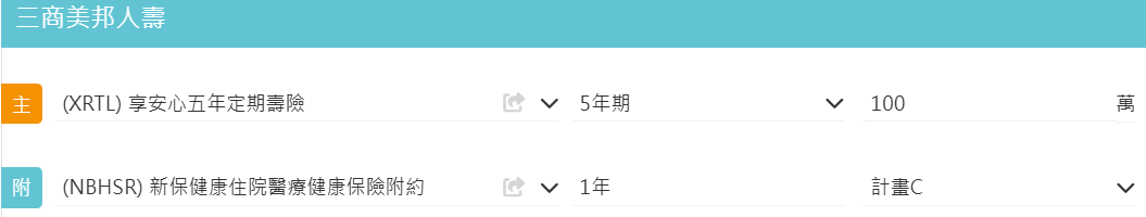 既有的保單是家母在我出社會前投保的,最近因為在保險業(公司33)的表姊找上我,因為關係還不錯想說讓她健檢一下,如果商品跟版上推薦的不要差太多是有考慮跟她保(就是人情保單啦~)。起初她開了建議清單給我,似乎除了壽險以外(個人沒家庭,壽險額度我當成是附加的),幾乎都需要補強,但因為不少終身險覺得保費有點高,且自己是想排除終身險的,所以自己才開始稍稍研究配置,目前初步補強的規劃如下: