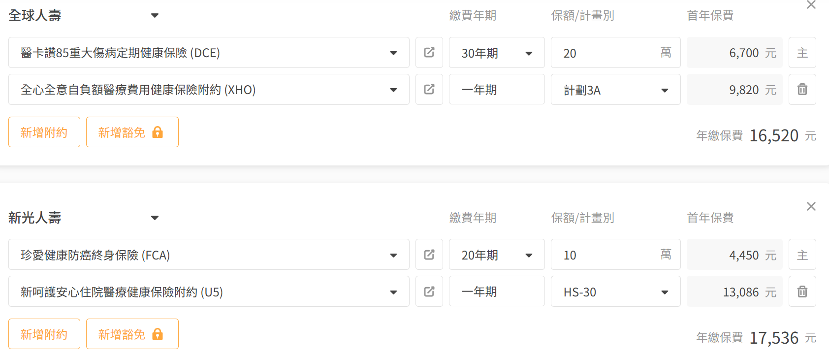 建議可參考以下方案加強原有保障,額度內容皆可再調整