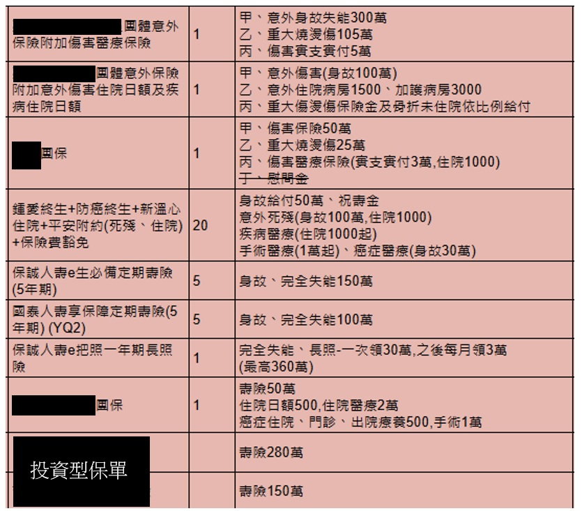 建議把所有保單的主約+附約保費和投保時間都貼上來哦!保單健診過後,會根據需求和保障缺口搭配適合您的商品哦~也會更符合您的需求!