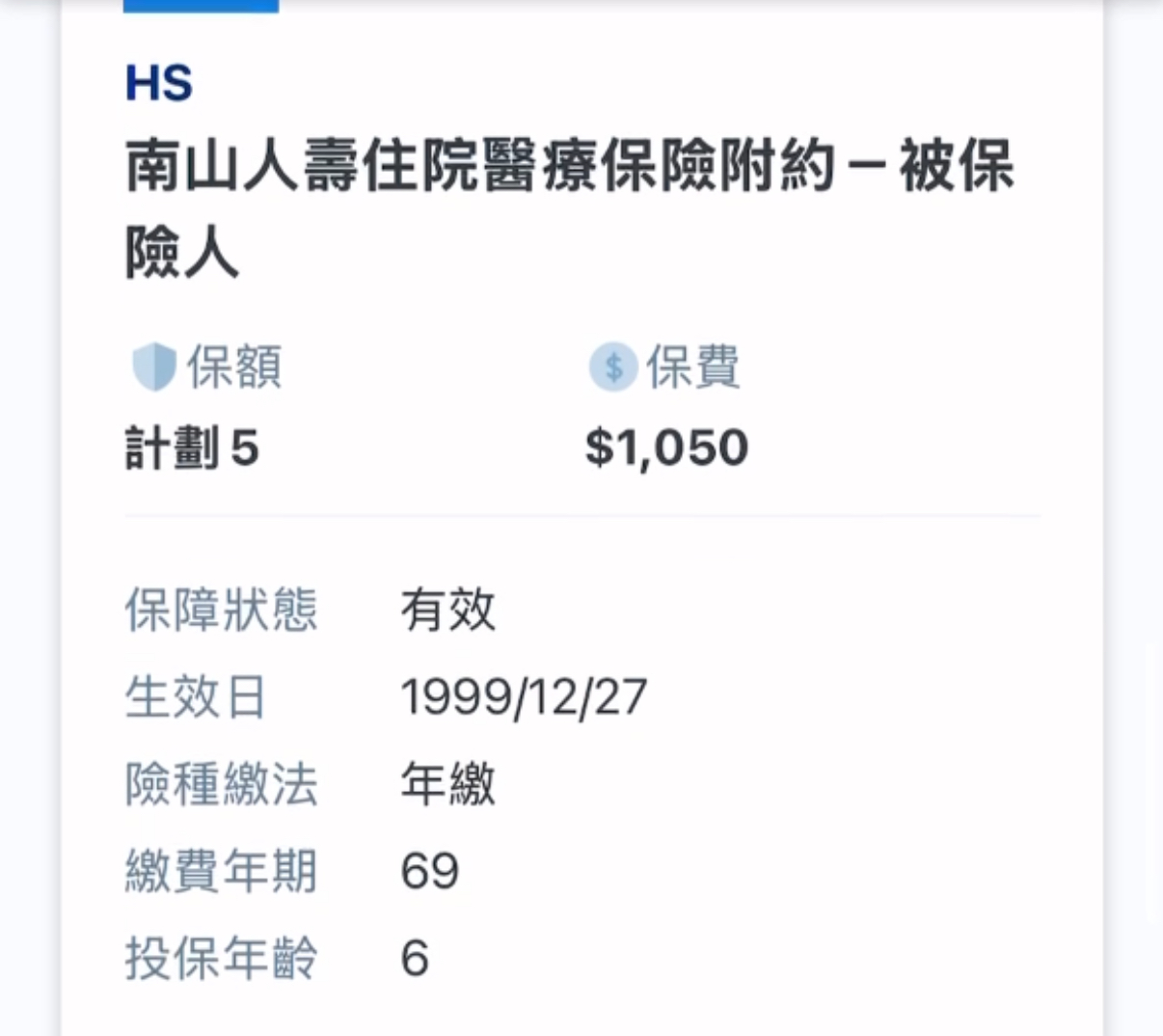 但是比較現在的保費來說,保費是相對便宜的,我會建議保留HS。
