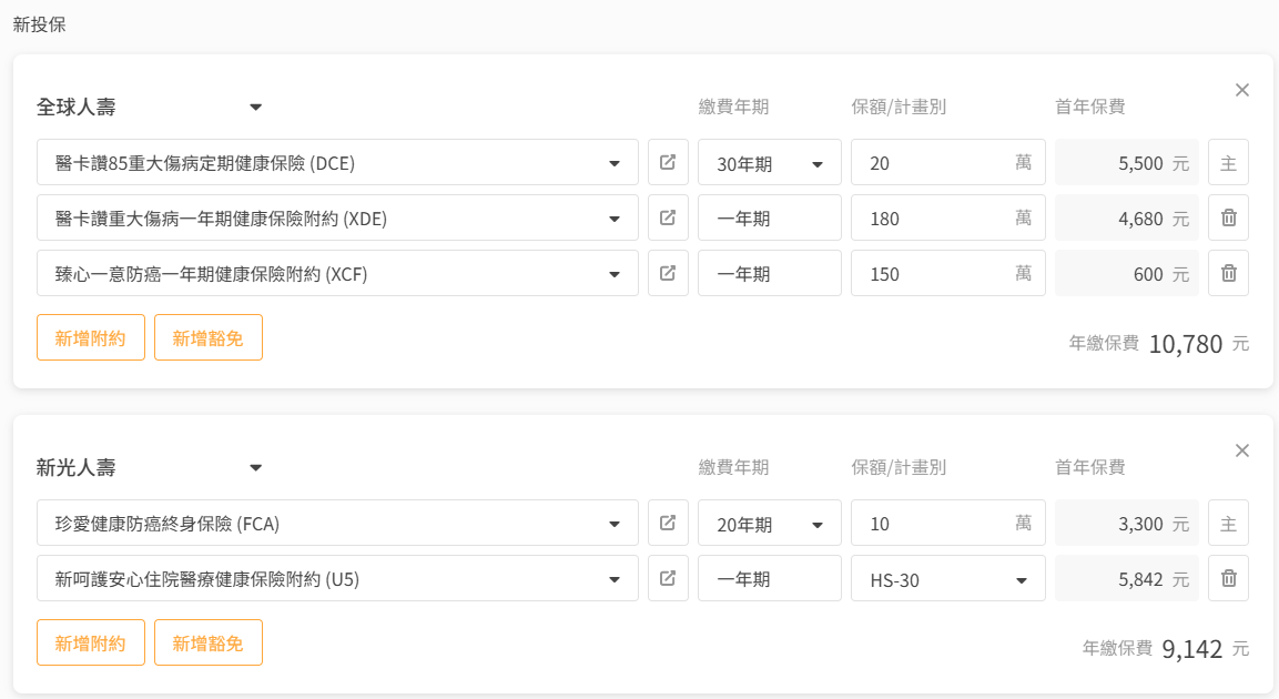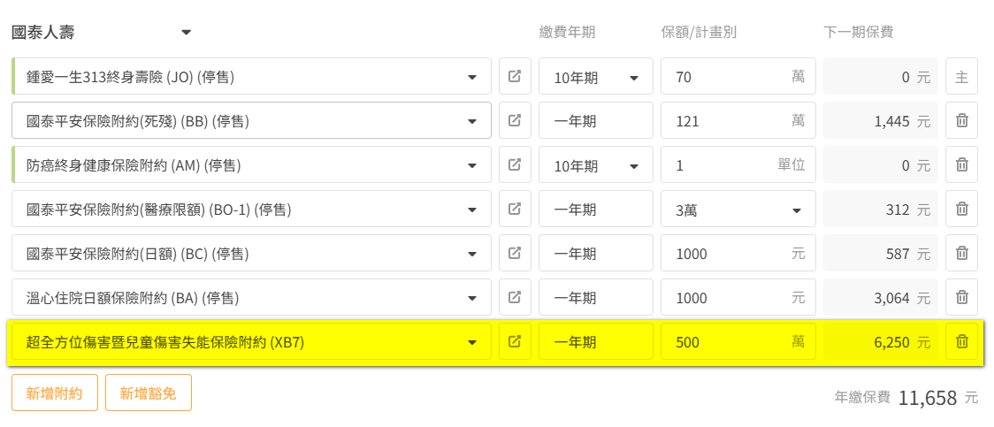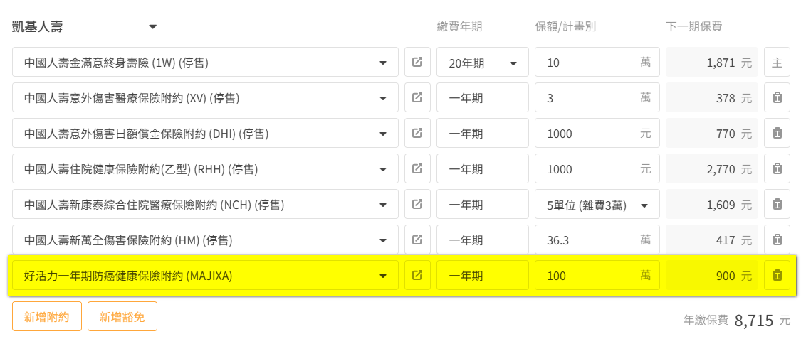 目前僅有國泰及凱基壽險(圖一~二) , (圖一~三)預計增保國泰失能、 凱基癌症 全球重大傷病及癌症,及 新光實支實付,不曉得目前規劃是否還有需要調整呢