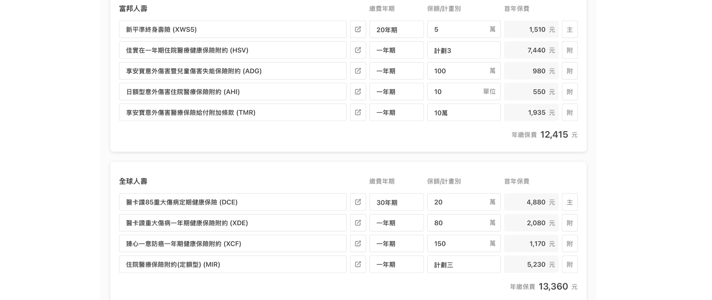 建議把所有保單的附約『保額或計劃別』都貼上來哦!(新全方位傷害保險附約的英文代碼)