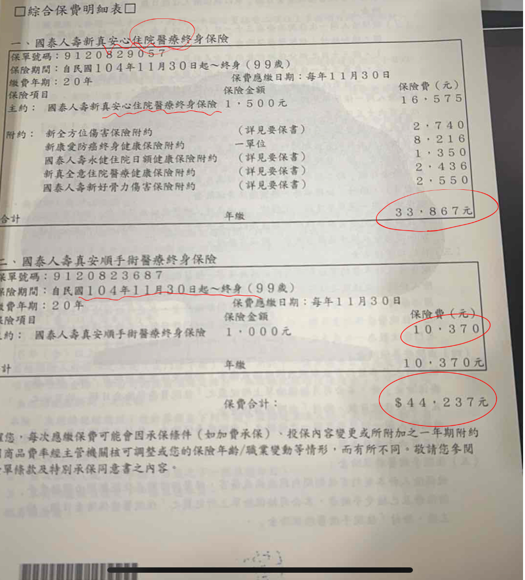 2、全球的部分沒有太大問題,留意癌症一次金後面保費漲幅會比較高,