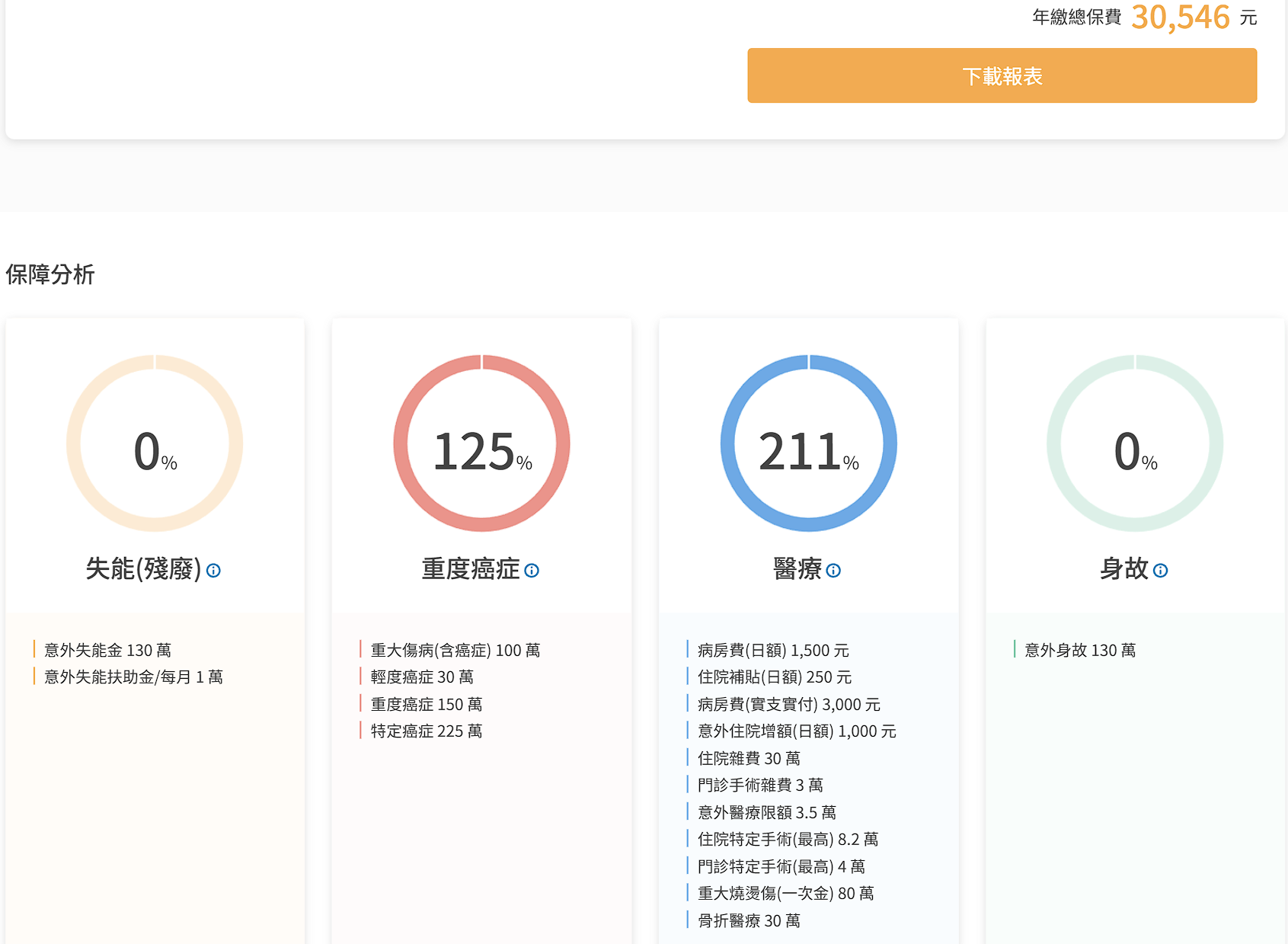 1️⃣ 目前保障缺口:實支實付、重大傷病、癌症險(一次金)、意外險、長照險、壽險