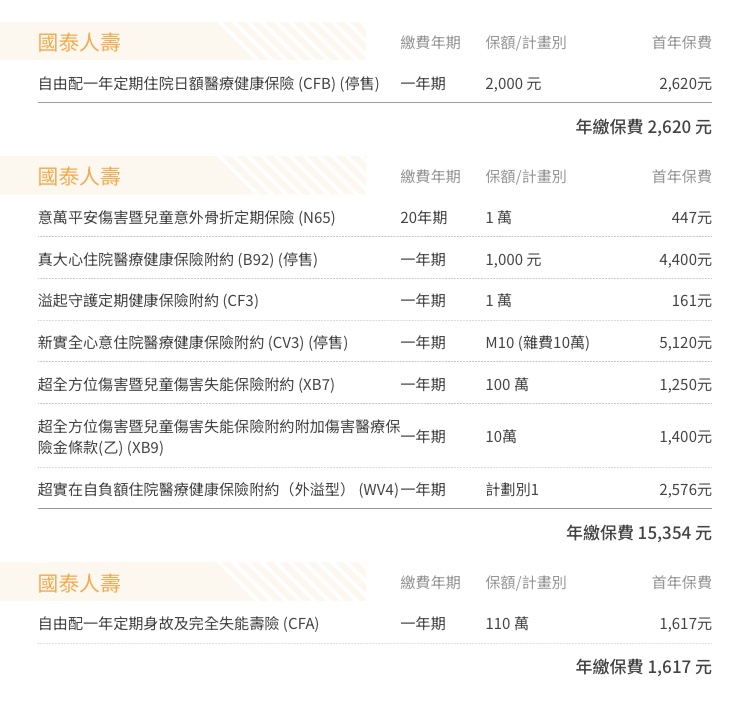 國泰此二者的費率無任何競爭力 , 建議至少擇一 用其他公司規劃