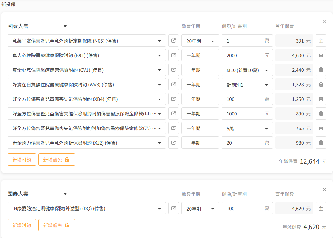 可以再把條件私訊給專業的保經顧問,幫你一起看整包是否有重複或缺口。