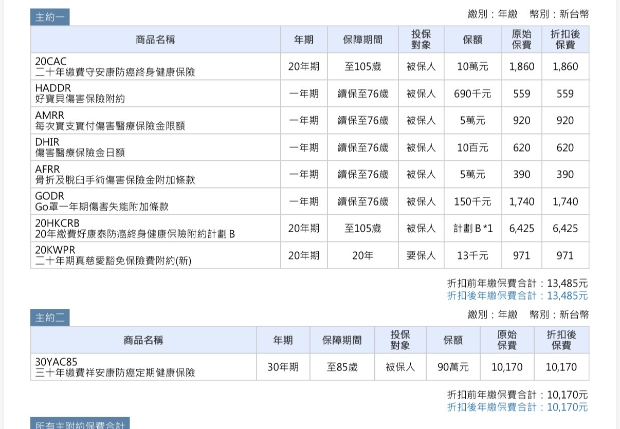 🔹有的話,舊保單建議可以把所有主+附約的所有保障內容(包含商品名稱、保額、保費、投保年期跟投保時間)一併貼上來,健診分析後,針對條款及保障缺口給您更精準的建議唷