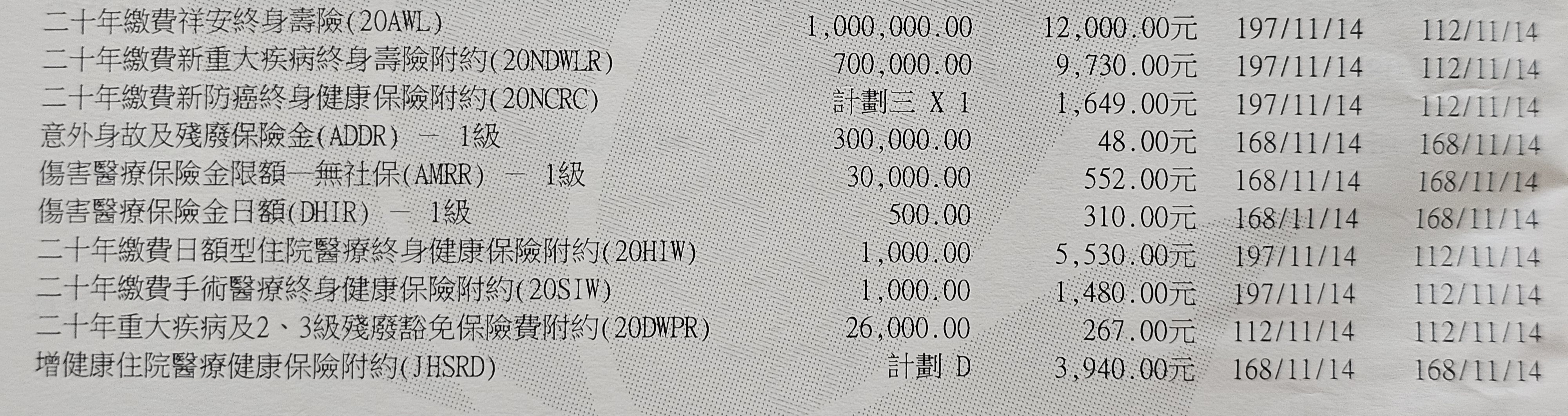 1- 都是很早前20年期的終身 , 基本上都繳完或接近繳完途中了, 就無需討論