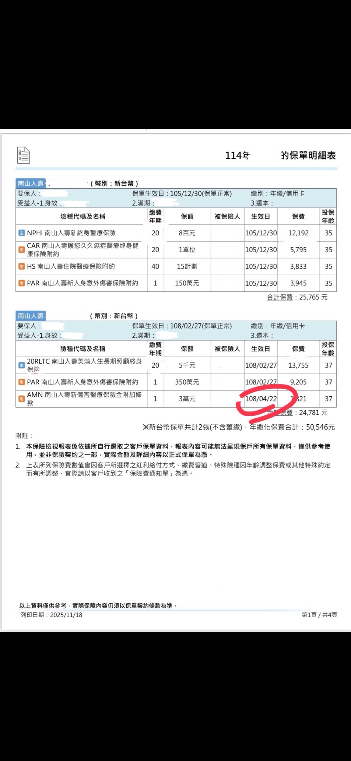 3. 南山長照解約 ➡️ 若有預算考量,可以考慮刪減