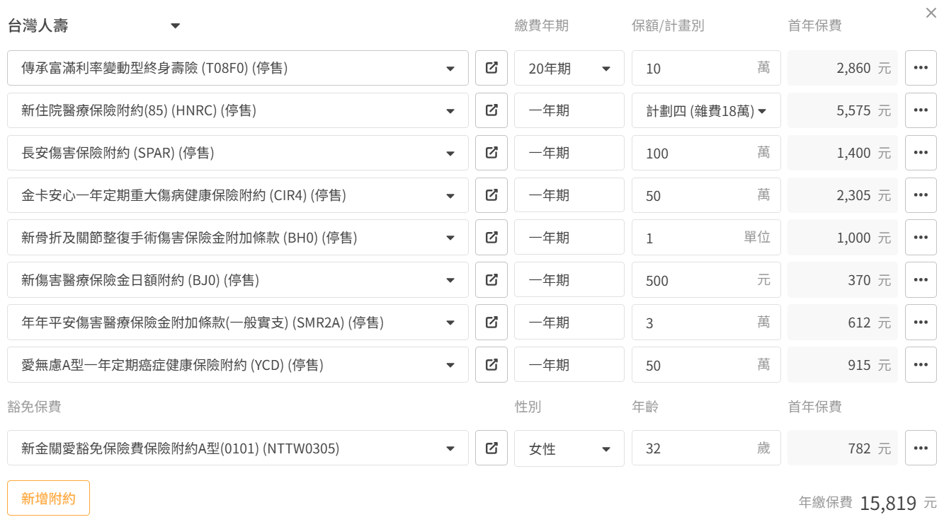 但您文中補強的全球遠雄費率不是32歲女,看起來是25歲女生的級距。