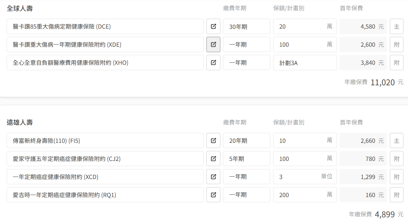 3、台壽CIR4的費率會比全球XDE貴,可以把台壽重傷的額度都挪去全球,