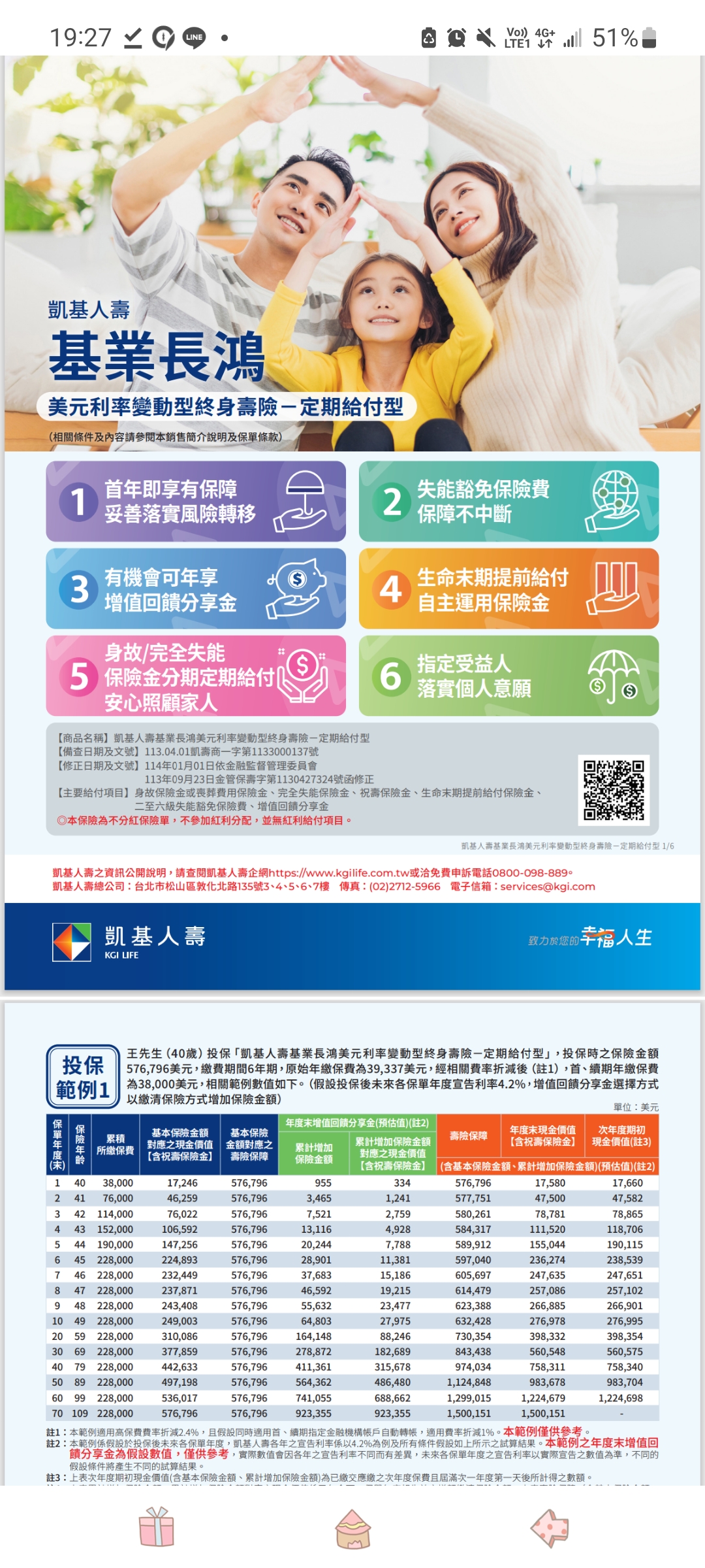 凱基這張《基業長鴻美元利變終身壽險(定期給付型)》