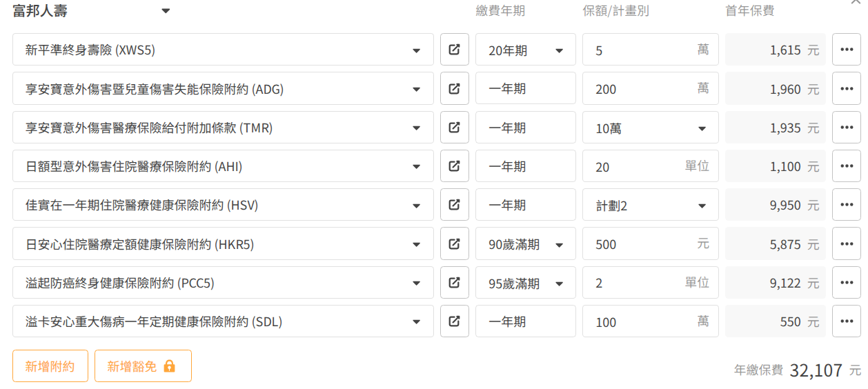 要規劃富邦可以,除了HSV、意外三寶其它刪掉