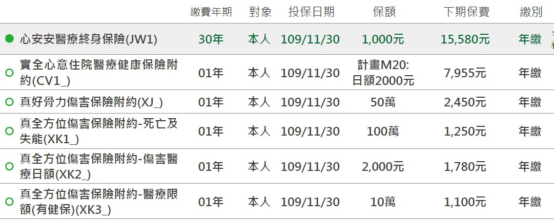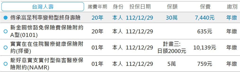 請教大家,圖片是目前持有的保單明細