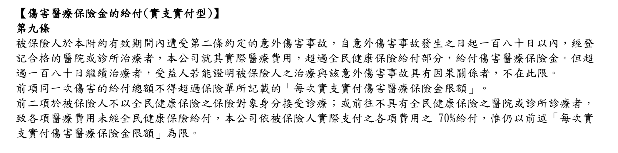 意外失能、意外扶助金、意外實支實付、意外日額、意外骨折,