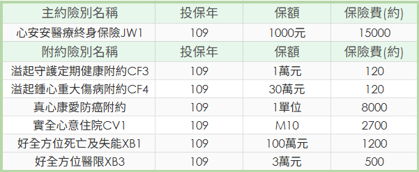 在109年的時候家人有幫我保一份保險,目前只有投保這張,現在要自己繳了才開始檢視,覺得保費有點高。