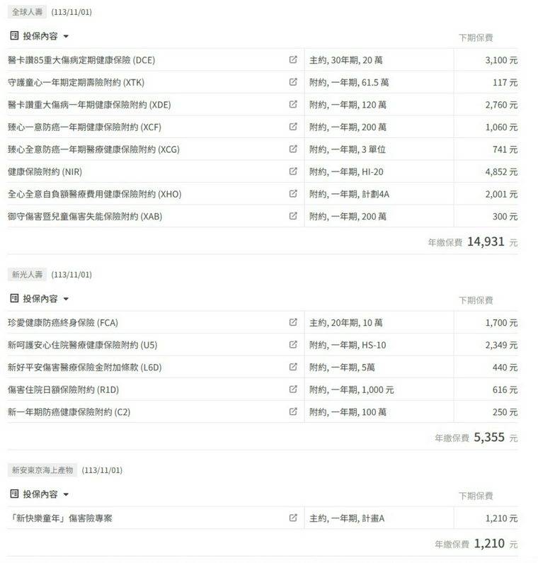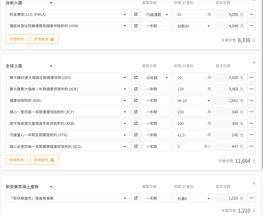 台新的實支實付門診額度比較高,但是還要搭配其他家的商品,保障才會完整,這樣就會多了主約的成本。