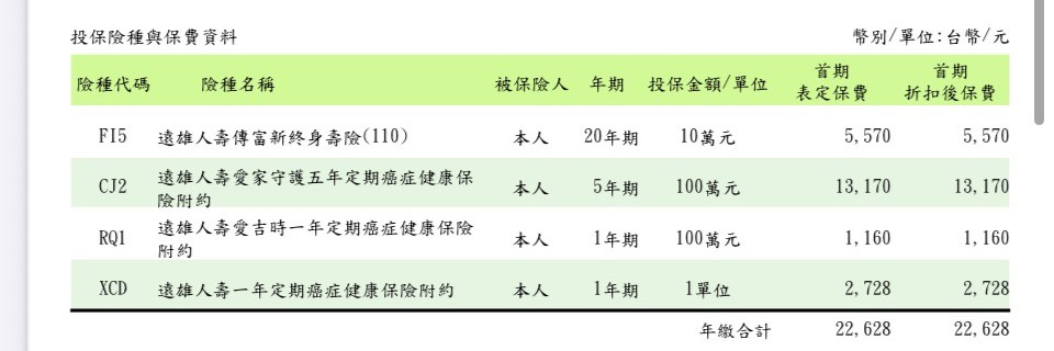 🔹有的話,舊保單建議可以把所有主+附約的『商品名稱、保額、保費、投保年期跟投保時間』一併貼上來,健診分析後,針對條款及保障缺口給您更精準的建議唷